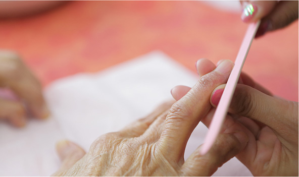 私の勤めている施設では、女性入居者の方の誕生日にはネイルを施してあげるのですが、とても喜ばれています。「ネイル」と「福祉」って一見結びつかないように感じるかもしれませんが、専門外の知識や技術でも、どんなことでも自分の仕事に活かしていけるんだと実感しています。